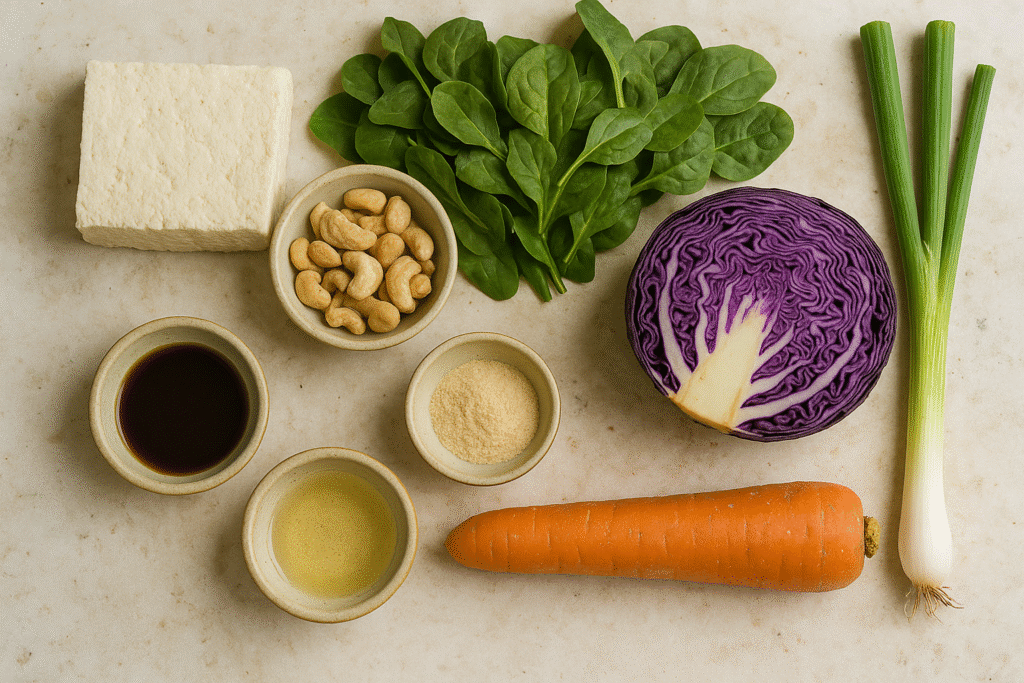 Crispy, crunchy, and colorful – it’s not like other salads. Plenty of raw vegetables to feel nutritionally sufficient. Just the right amount of tofu & nuts to satiate. Versatile enough to mix in a variety of vegetables sitting around in your kitchen.