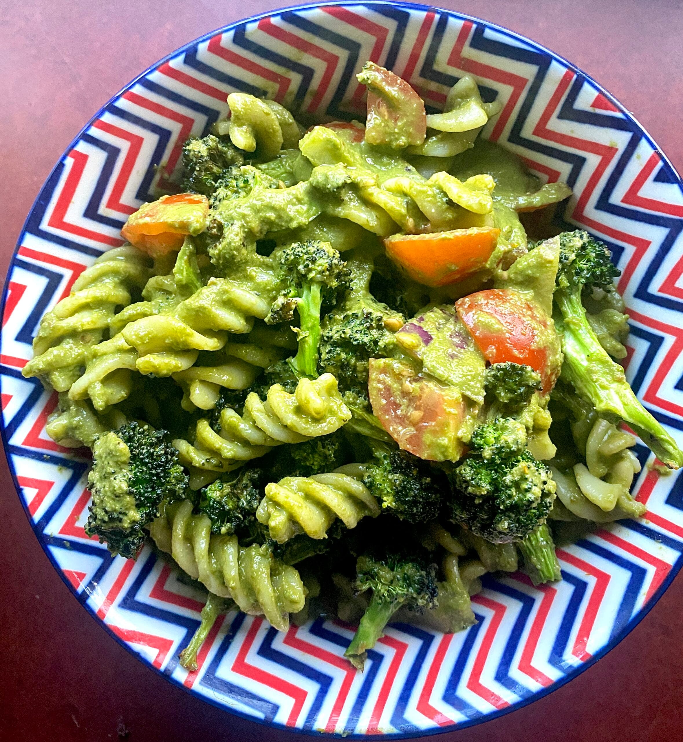 A fresh and vibrant pasta tossed with fragrant basil, juicy cherry tomatoes, and a hint of red onion, finished with tender noodles for a light and flavorful meal.